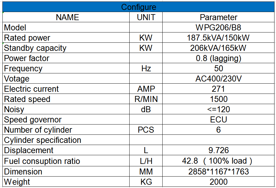 Generador eléctrico diesel de 150 KW para producción de madera contrachapada